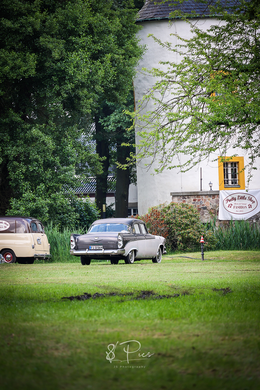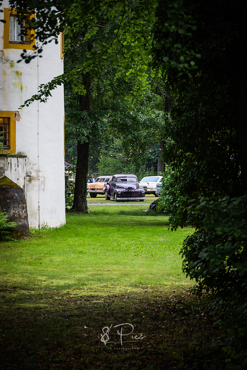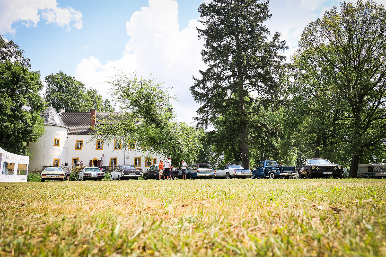 Warum dort? Ist das nicht ein wenig kitschig und klischeebedient? Ami-Oldtimer-Treffen in einem schicken Park, an einem Schloss – man konnte sich oberflächlich betrachtet ja so ca. ausrechnen, was sich für Publikum dort tummelt oder tummeln könnte, um mal ein bisschen weiter zu sticheln..