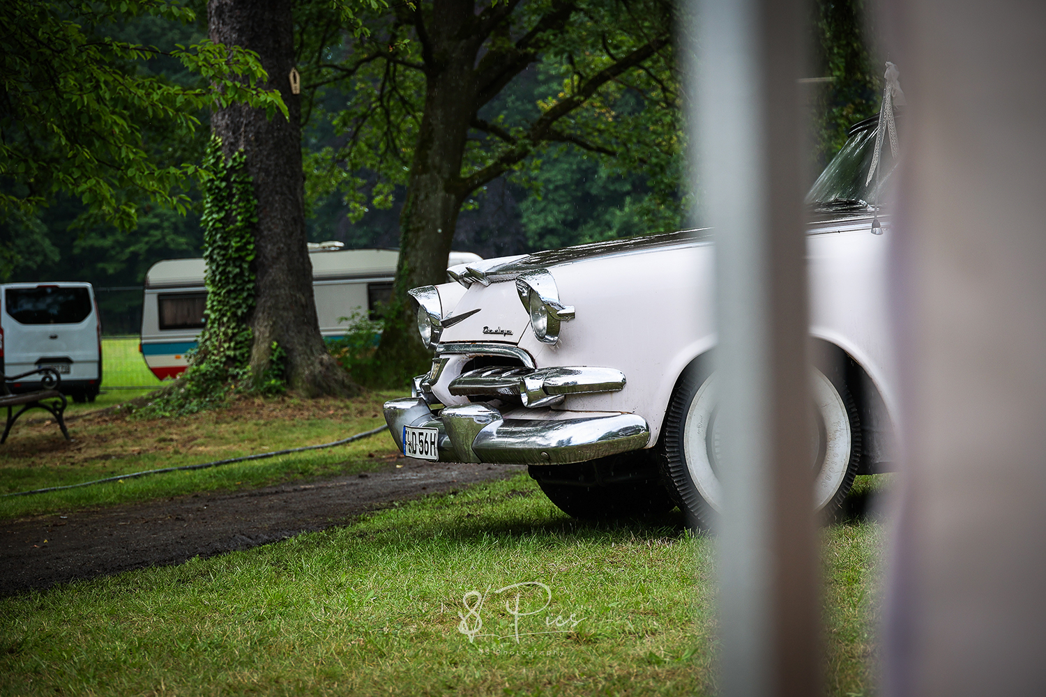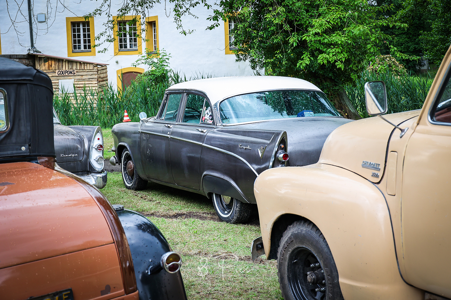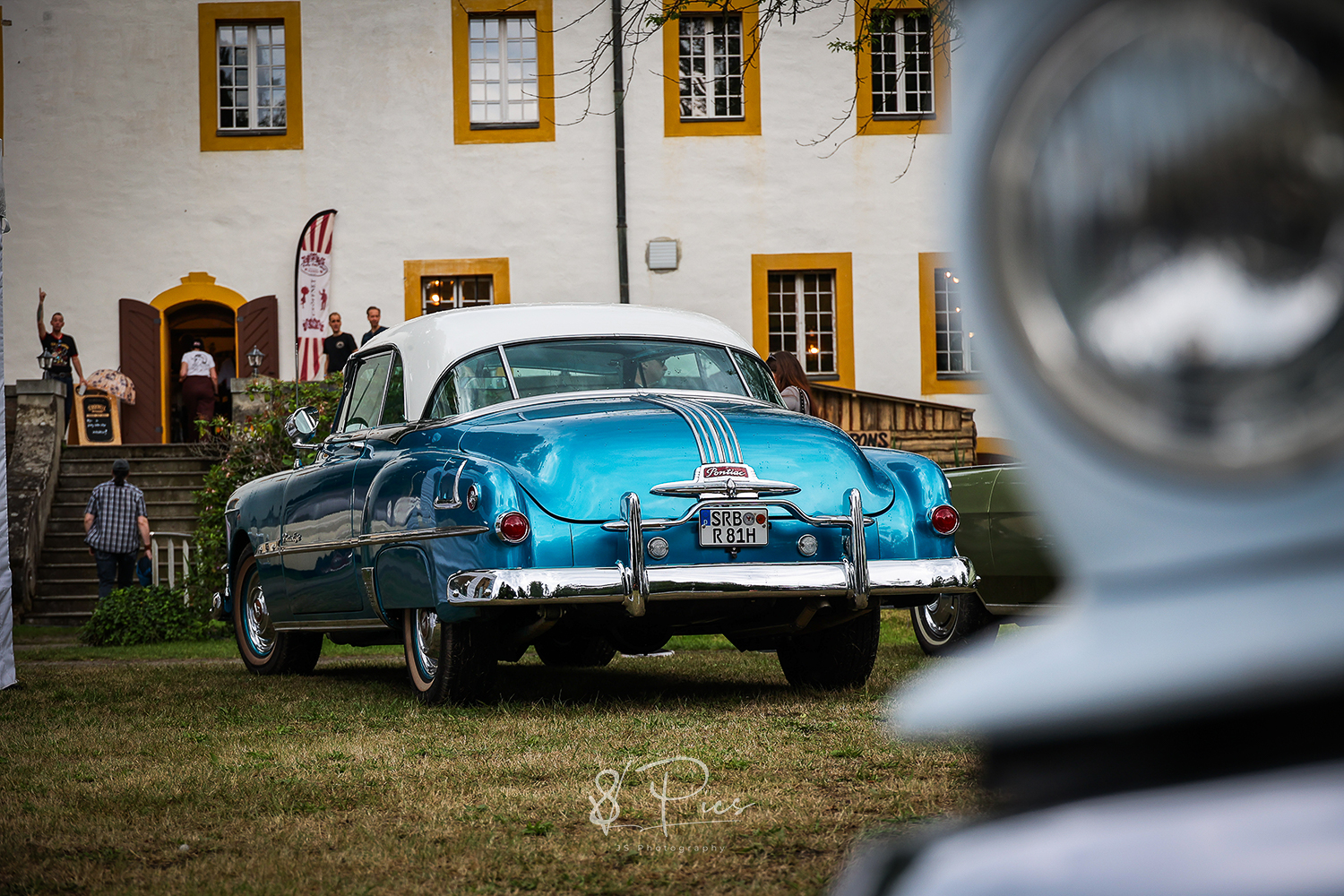 Warum dort? Ist das nicht ein wenig kitschig und klischeebedient? Ami-Oldtimer-Treffen in einem schicken Park, an einem Schloss – man konnte sich oberflächlich betrachtet ja so ca. ausrechnen, was sich für Publikum dort tummelt oder tummeln könnte, um mal ein bisschen weiter zu sticheln..