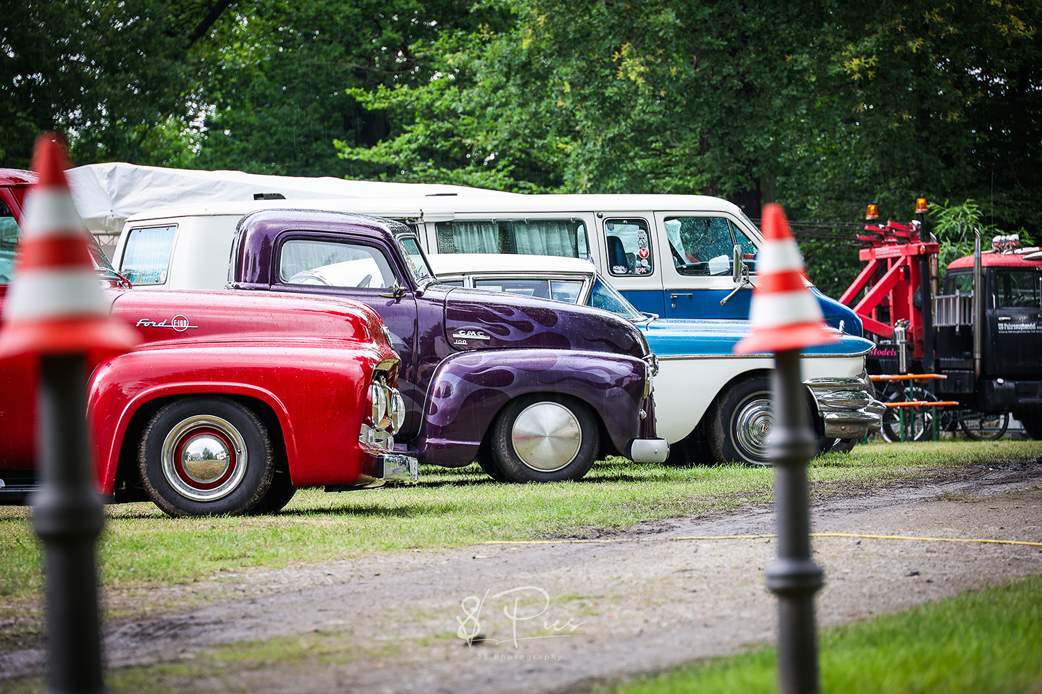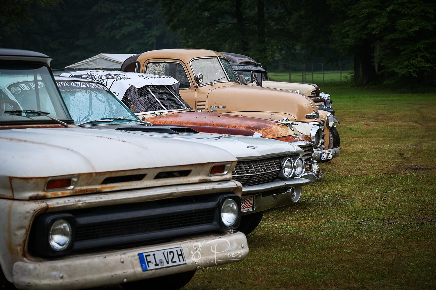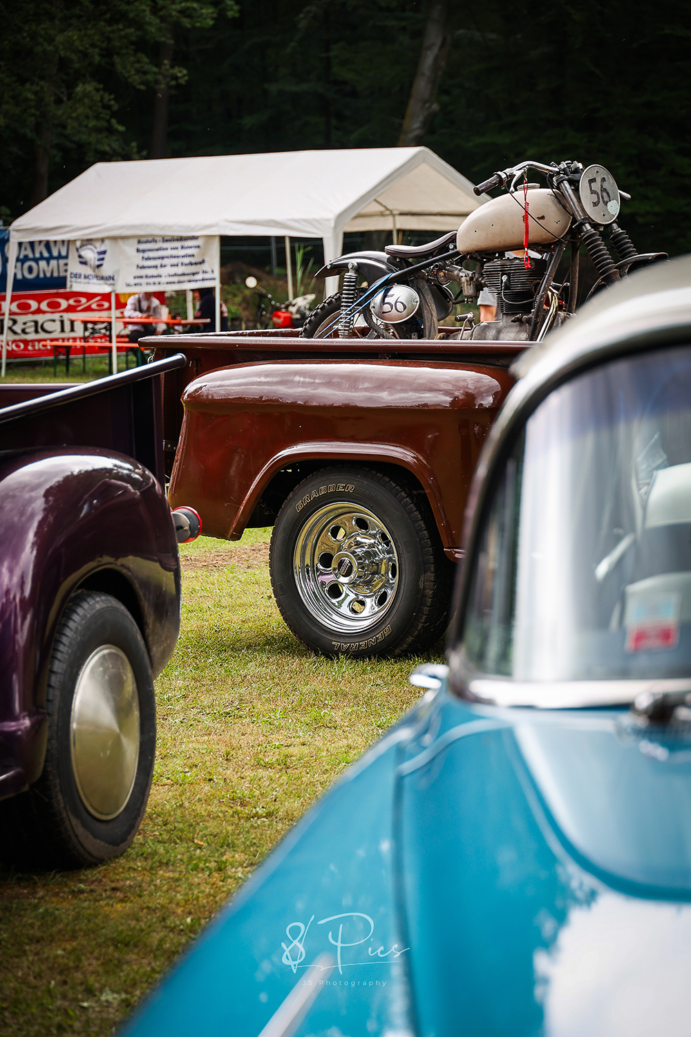 Es sind diese Prestige-lastigen Veranstaltungen, auf denen das Chrom alle 60min frisch poliert wird und die Autowagen alle penibel mit Mindestabstand nebeneinander aufgereiht stehen. Dann und wann sitzt eine Tante Ilse in ihrem Klappstuhl neben dem Hobel von Onkel Bertram Wache und blickt den vorbei wackelnden Ladies in ihren 50er, 60er-Jahre Petticoat-Kleidern argwöhnisch hinterher. Und dann sind ja noch diese herrlichen Wettbewerbe… man findest zumeist die gleichen Wagen in der Reihe vor der Bühne, die sich im letzten Jahr schon und in den Jahren davor ebenso, immer wieder neu in altem Antlitz präsentierten – der Pokal goes erneut an Erbsen-Egon mit seinem alten Klapper-Kartoffel-GMC Truck, der doch vor sechs Jahren die Ladefläche so unglaublich schick neu gestaltet hat, mit seinen, mit einem alten Bunsenbrenner bearbeitet, geflammten Bretterleisten. Okay.. Vielleicht war es aber auch ein vertuschter Garagenbrand…