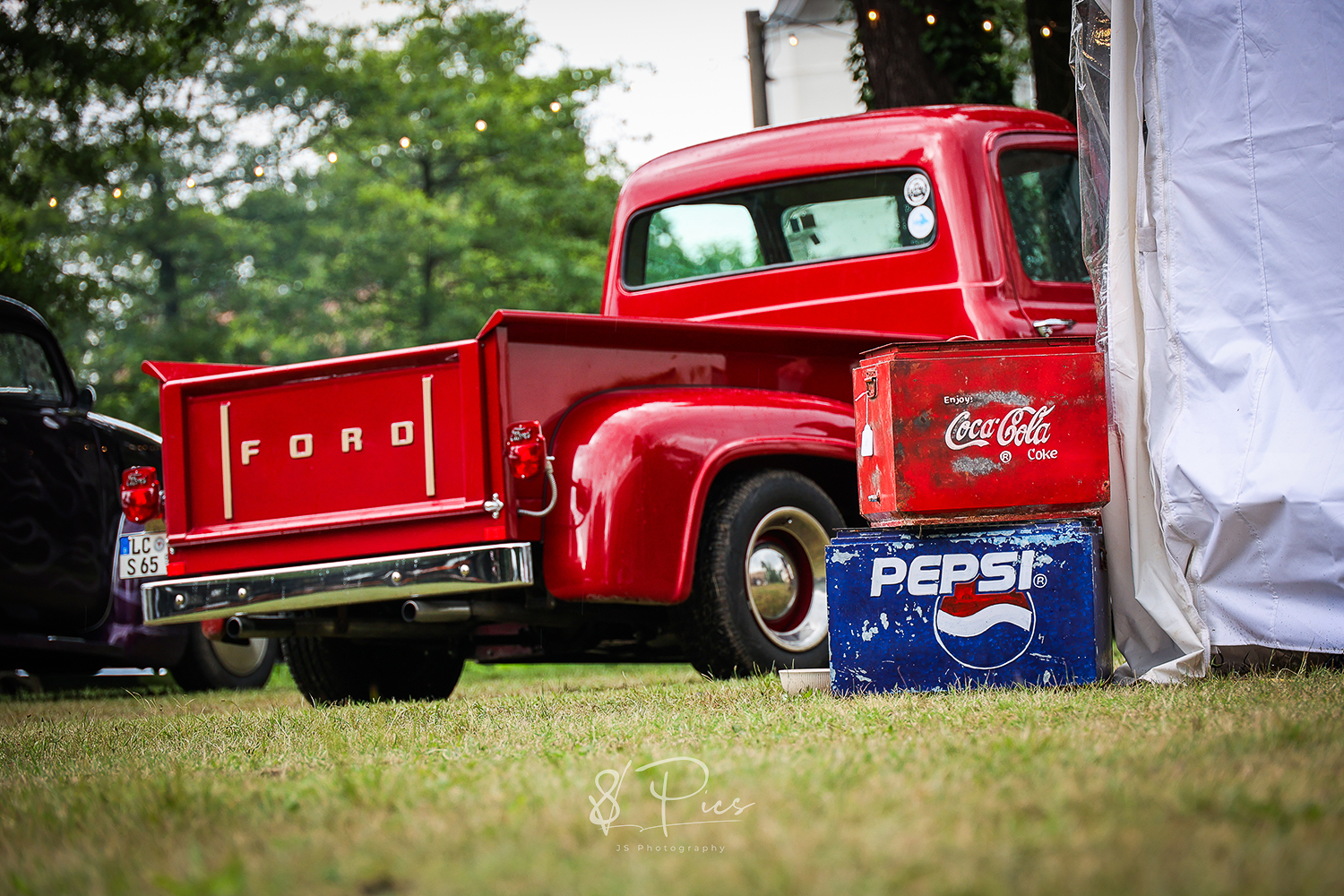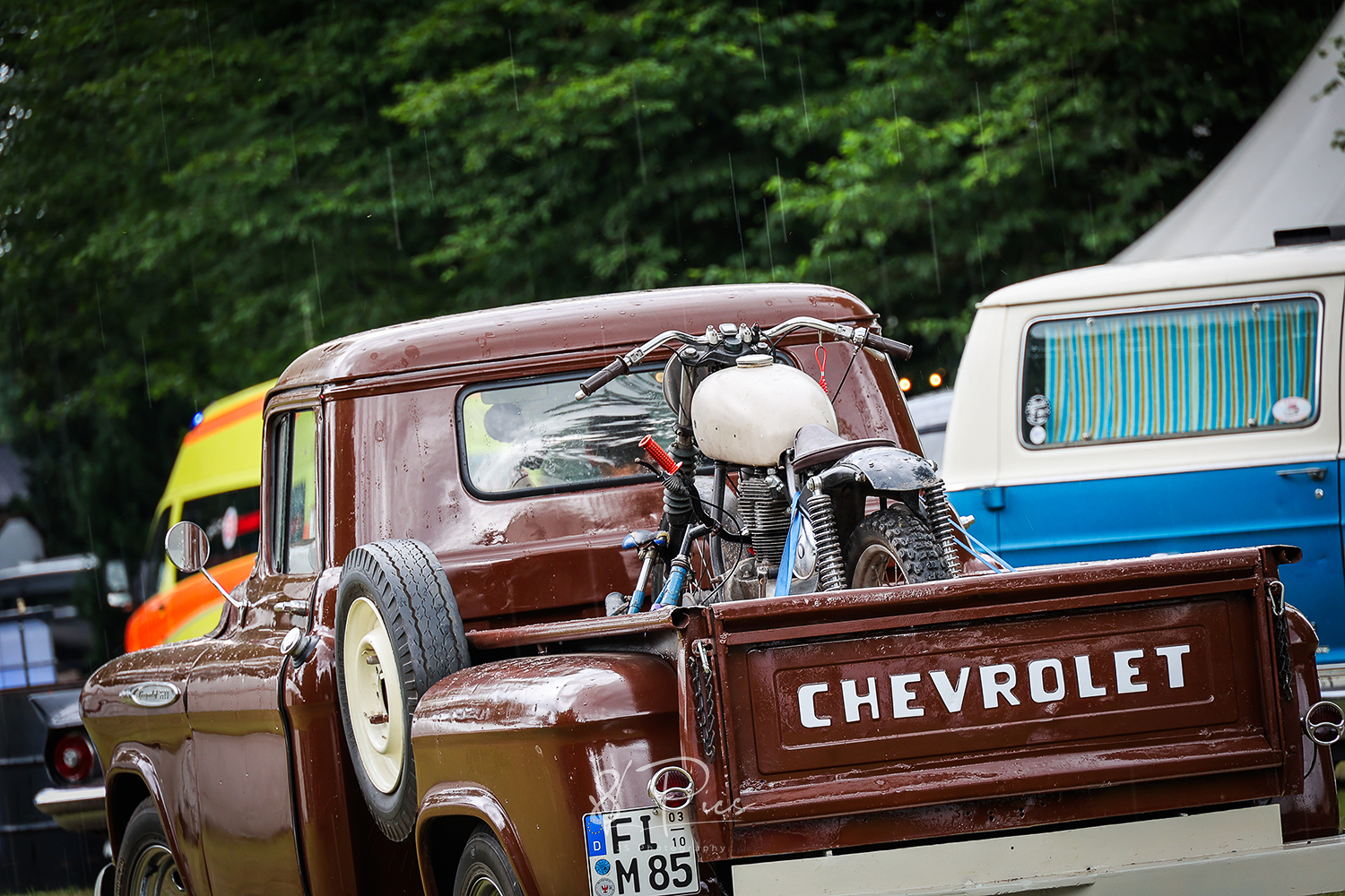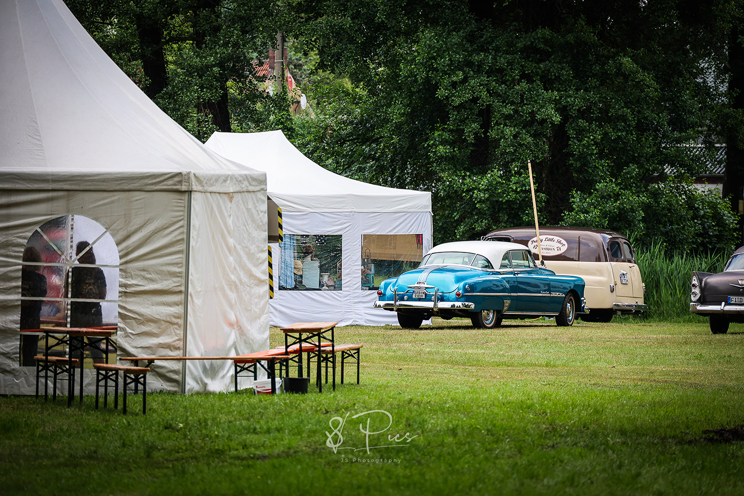 Es sind diese Prestige-lastigen Veranstaltungen, auf denen das Chrom alle 60min frisch poliert wird und die Autowagen alle penibel mit Mindestabstand nebeneinander aufgereiht stehen. Dann und wann sitzt eine Tante Ilse in ihrem Klappstuhl neben dem Hobel von Onkel Bertram Wache und blickt den vorbei wackelnden Ladies in ihren 50er, 60er-Jahre Petticoat-Kleidern argwöhnisch hinterher. Und dann sind ja noch diese herrlichen Wettbewerbe… man findest zumeist die gleichen Wagen in der Reihe vor der Bühne, die sich im letzten Jahr schon und in den Jahren davor ebenso, immer wieder neu in altem Antlitz präsentierten – der Pokal goes erneut an Erbsen-Egon mit seinem alten Klapper-Kartoffel-GMC Truck, der doch vor sechs Jahren die Ladefläche so unglaublich schick neu gestaltet hat, mit seinen, mit einem alten Bunsenbrenner bearbeitet, geflammten Bretterleisten. Okay.. Vielleicht war es aber auch ein vertuschter Garagenbrand…