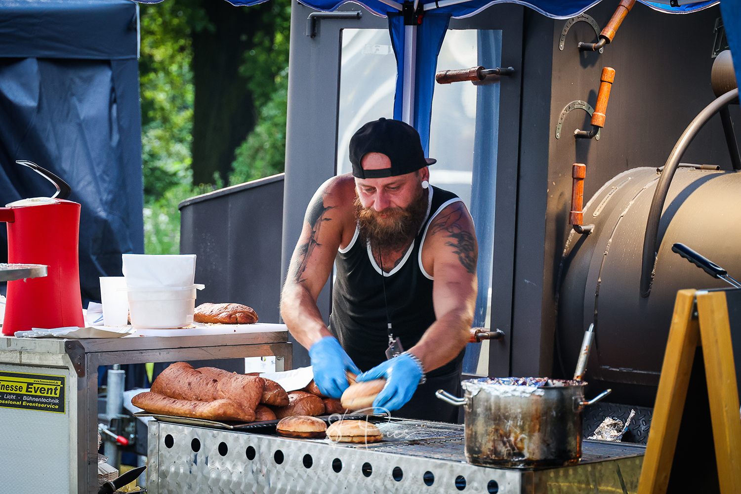 Ja und so geschah es.. Vor mir stand auf einmal dieser deutlich sichtbar übernächtigte Dude mit Cap und Rumpelstilzchen-Bart. Leidenschaftliche Augen, wenn auch müde, strahlten, als er mich begrüßte und mir seine Bewunderung über meine Fotoarbeiten kundtat. Und es war keinesfalls dieses Floskel-Floskel „Du machst tolle Fotos!“, sondern ein tief ernst gemeintes Kompliment, mit einer mitreißenden Wortwahl.