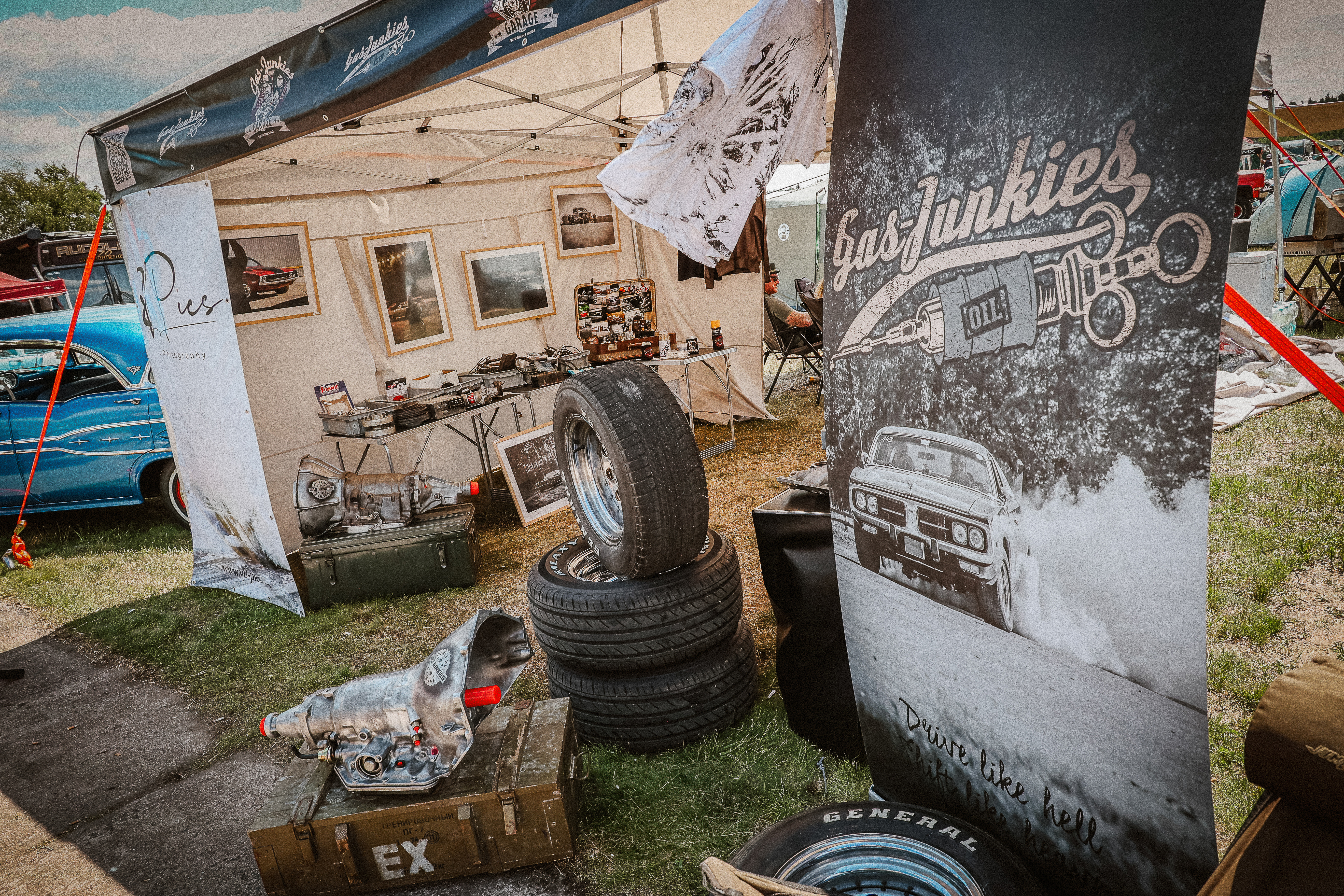 Als die Jungs von Gas Junkies Garage 2022 zum ersten Mal beim Race 61 in Finowfurt auftauchten, war da dieser kindliche Glanz in den Augen. Wie im Spielzeugladen – alles voller V8, Lack, Krach, Leben. Doch zwischen Grilldunst und Chrom fiel schnell auf: viel Show & Shine, wenig echte Schrauberei.