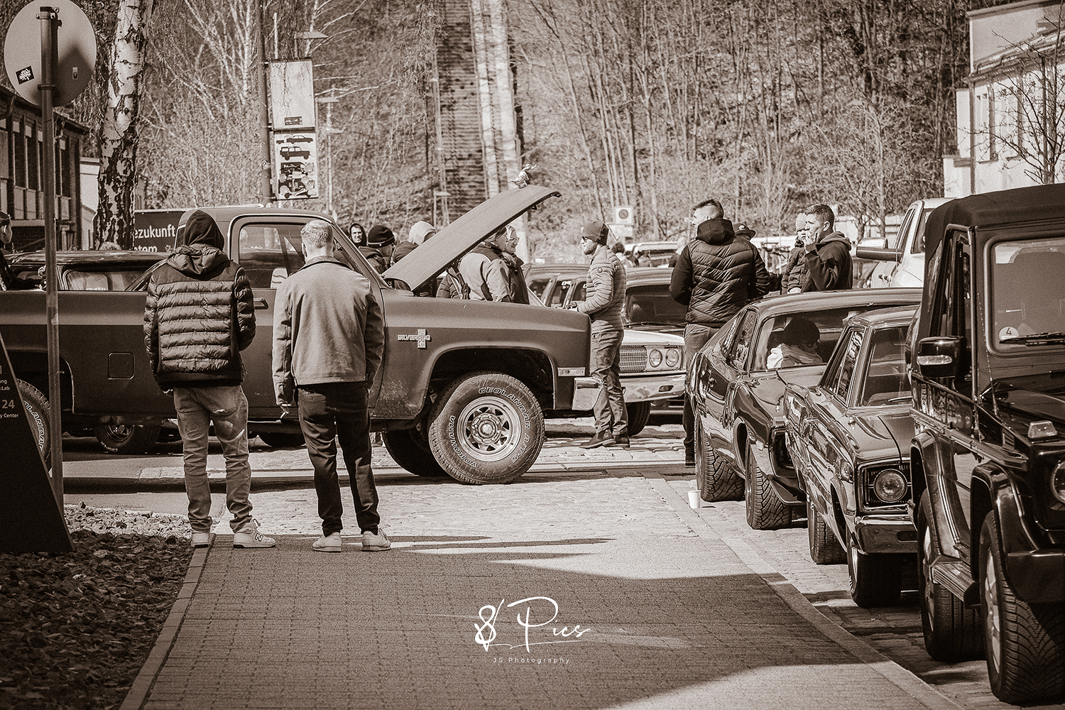 Der Dodge Charger ist hier genauso gerne gesehen, wie ein getunter 3er BMW und ich bemerke, wie wenig ich von genau diesen weiß, sodass ich schon schmunzeln musste, als ich die Gespräche deren Liebhaber mitbekomme. Genau dort verlassen wir unseren Tunnel und blicken anders um uns. Ja irgendwie begann ich wieder richtig um mich zu schauen, denn mein Gehirn musste schnell einsehen, dass es eben nicht wusste, wann es trainiert die Kamera zücken musste. Ich schaute länger, anders, machte manchmal auch einfach gar nichts und genoss einfach, dass Auto-Menschen unterschiedlicher Szenen hier miteinander zusammengefunden hatten, einfach nur um einen Kaffee zu trinken und ihr Gefährt zu bewegen. Und das ist der Geist dieses neuen, gar nicht mal soooo kleinen Treffen, welches sich bereits seit 4 Monaten durch diese Saison schlängelt.
